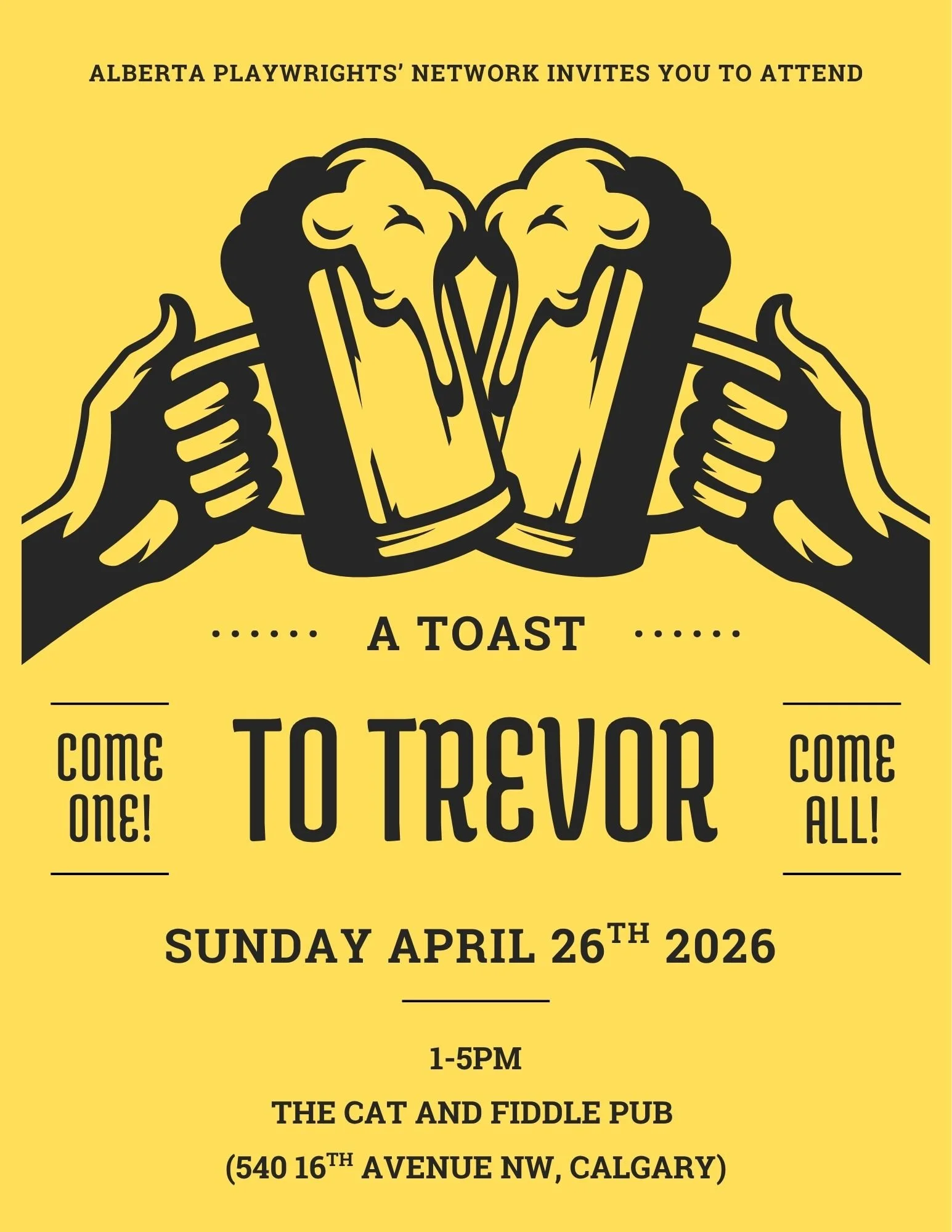 Can’t make it for the party but still want to get in on the fun? Pass along your well wishes for Trevor by emailing Managing Director Jenn Taylor at jenn@albertaplaywrights.com with the subject line “Message for Trevor”, and we’ll get them passed along as part of the event.